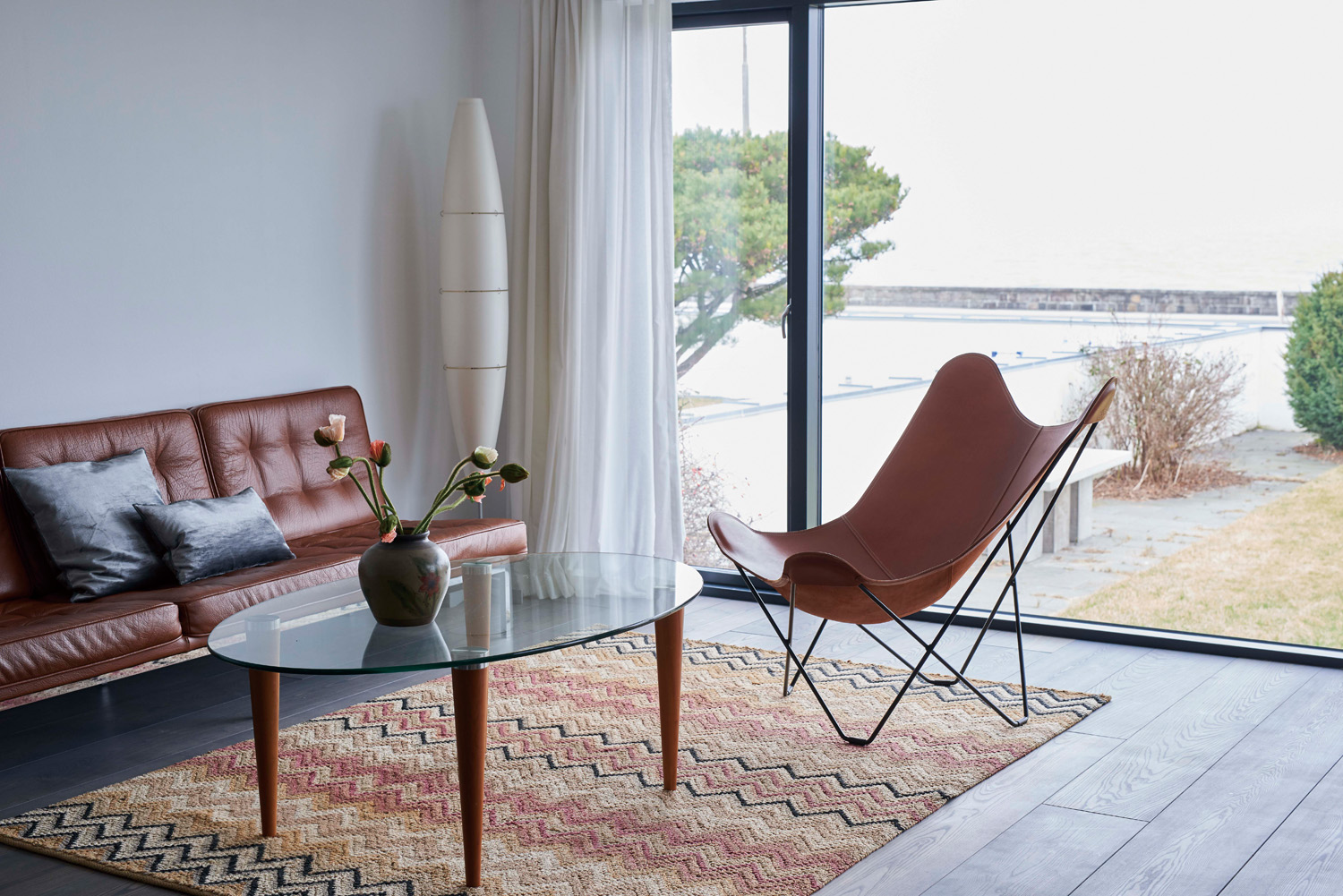 - 正式名称は「CUERO BKF BUTTERFLY CHAIR」、素材はソリッドスチールとベジタブルタンニンなめしの本革。